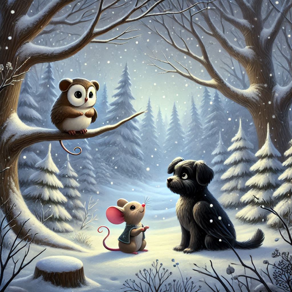Egérke és Ördög boldogan játszottak a frissen hullott hóban, amikor hirtelen a világ megváltozott. A hópelyhek lassan elapadtak, és a csillogó tájat szürke fátyol borította be. Az erdő állatai csodálkozva gyűltek össze, tanácstalanul figyelve az eget. A bölcs bagoly, aki mindig mindent tudott, megosztotta velük a hírt: a Hópehelyvarázsló elvesztette varázspálcáját, és nélküle a tél varázsa szertefoszlik.