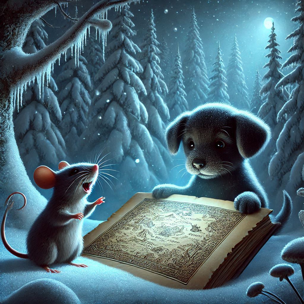 Egérke és Ördög hosszú évek óta jó barátok voltak, és sok kalandon osztoztak, de ezúttal valami másra vágytak. Egy téli estén, mikor a csillagok úgy ragyogtak, mintha titkokat suttognának, Ördög előhúzott egy régi térképet.